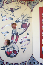 This painting installation will have three main components. One circus tent shaped vignette housing a moustache wheel and two tantalizing scenes with the heads cut out for photo opportunities. It is 12' tall and occupies a 12'x12' space. There will also be two 8'x8' walls, each with spectacular circus imagery interspersed in the space. They will tie in with the tent collage and the other vignettes.